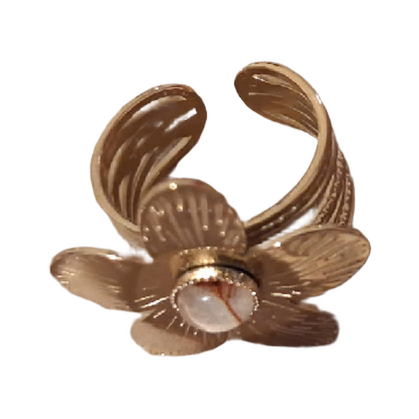 Bague Fior di Luna – Acier inoxydable doré & cabochon nacré